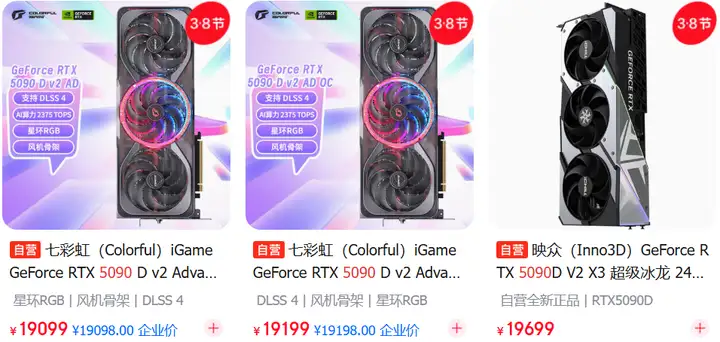 N卡RTX 5090D V2:19099元價位,性價比分:2.43