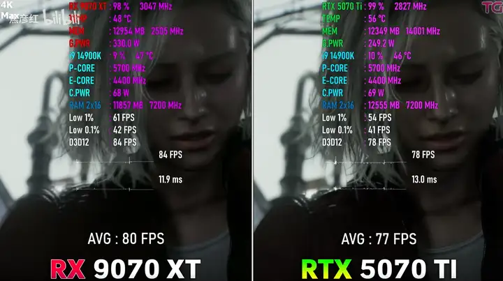 那5070就是繞不開的型號,和9070GRE一樣,遊戲性能滿足2K天花板,4K入門: