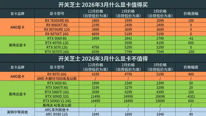 哎,反正都是漲,我把3月顯卡價格整理如圖,大家可參考: