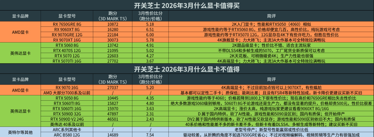 到以上,3月主流推薦顯卡告一段落,再聊聊不推薦的顯卡!
