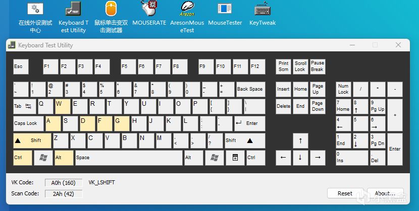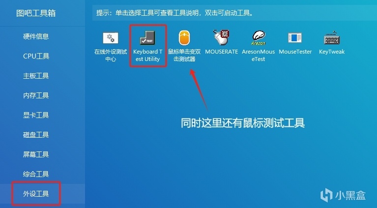 ①打开工具箱的「键盘测试」