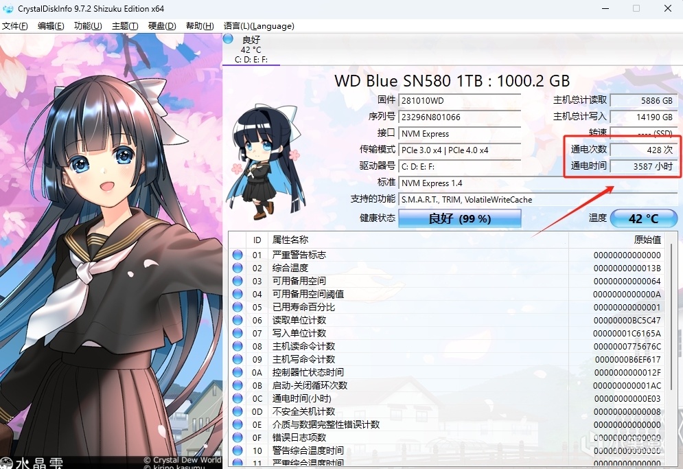 ①打开工具箱里的「DiskInfo」,重点看两个数值:通电次数和通电时间。