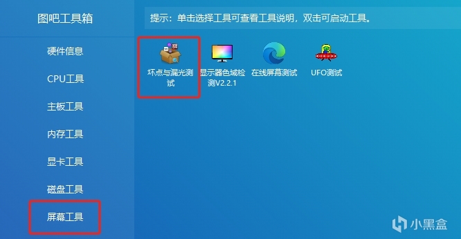 ①在工具箱里找到「坏点与漏光测试」