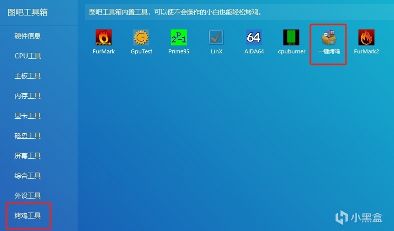 ①选择工具箱里的「一键烤机」