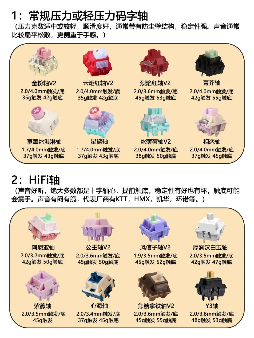 聊了这么多轴体,盒友们有找到喜欢的吗?这里根据轴体特性做一个分类总结。