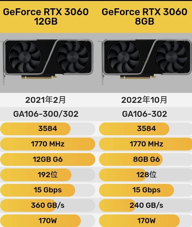 雖然沒有公開的信息說明迴歸的RTX 3060是指原始的12GB型號、後期的8GB型號,還是兩者兼有,但從5050從4+4變成3+3+3來看,3060的顯存可以暢想的空間還是很大的。