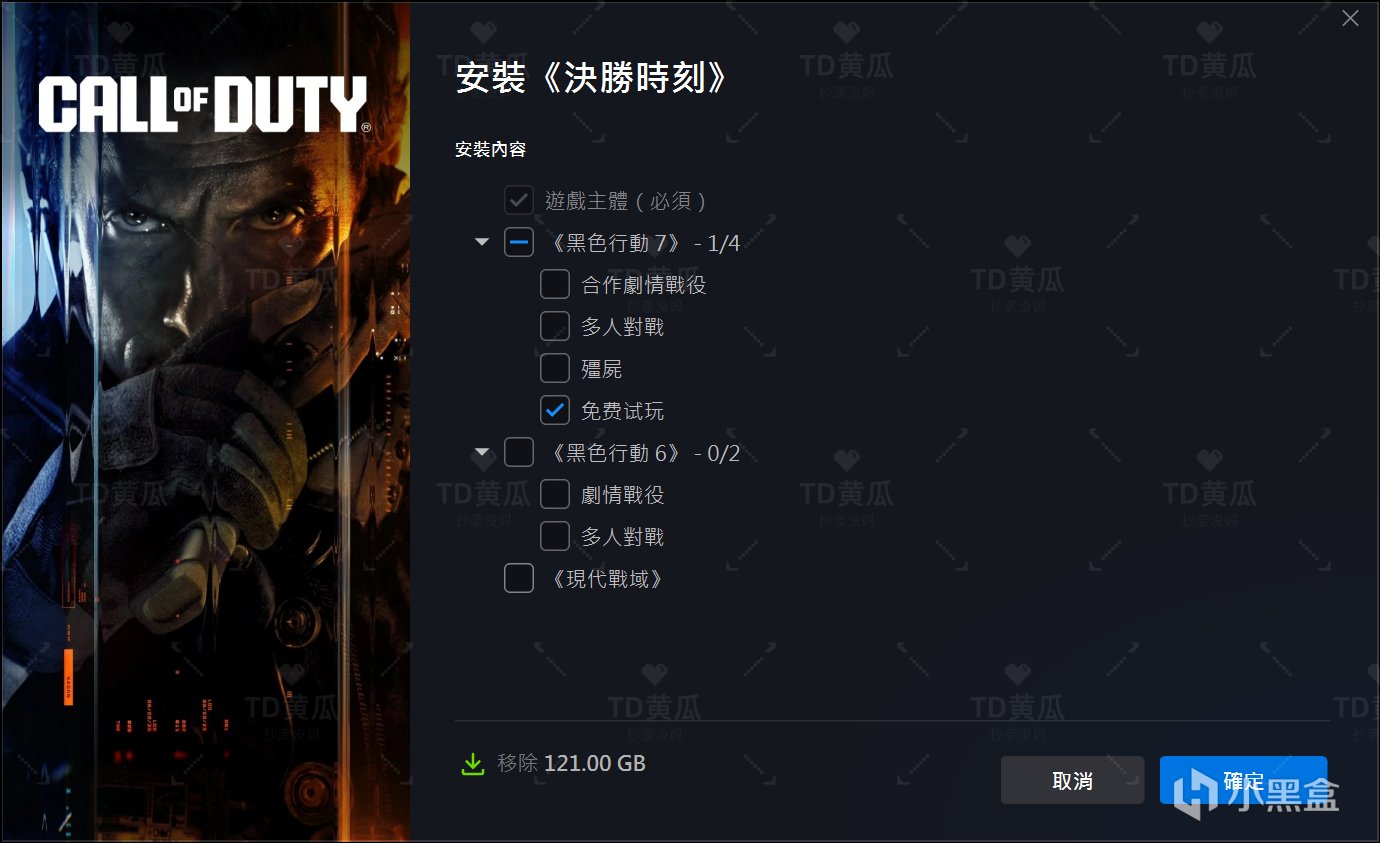 在《使命召唤®》总部的选项→更变安装→《黑色行动7》中勾选“免费试玩”。