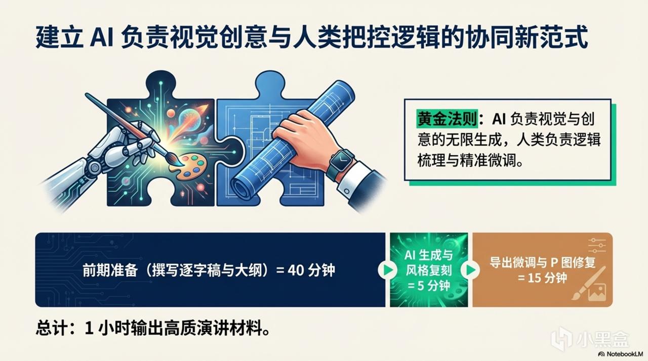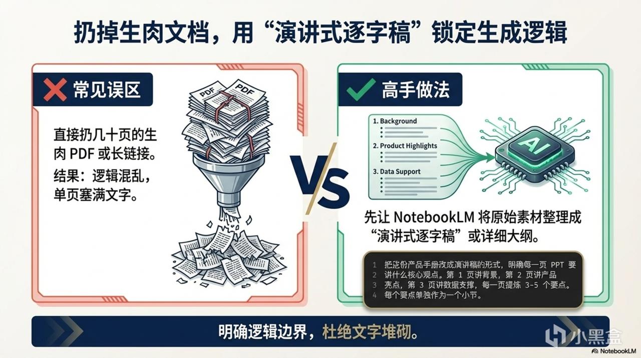 把这篇结构清晰的“逐字稿”作为素材喂给 NotebookLM,它生成的每一页就会严格遵循你的逻辑边界,不会出现一页塞满文字的情况。