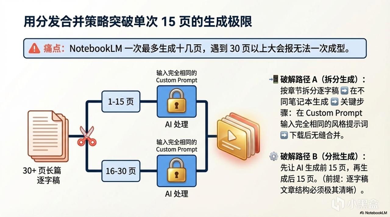NotebookLM 一次最多只能生成十几页的 PPT。如果遇到需要做 30 页以上的大会报怎么办?