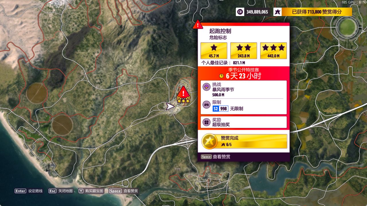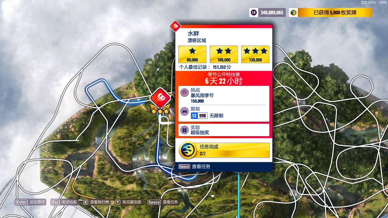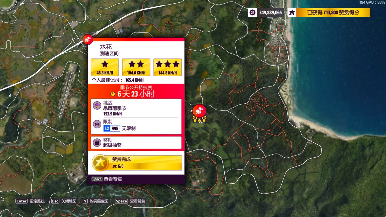 测速区间:水花,完成奖励为超级抽奖(完成条件:152.9km/h)