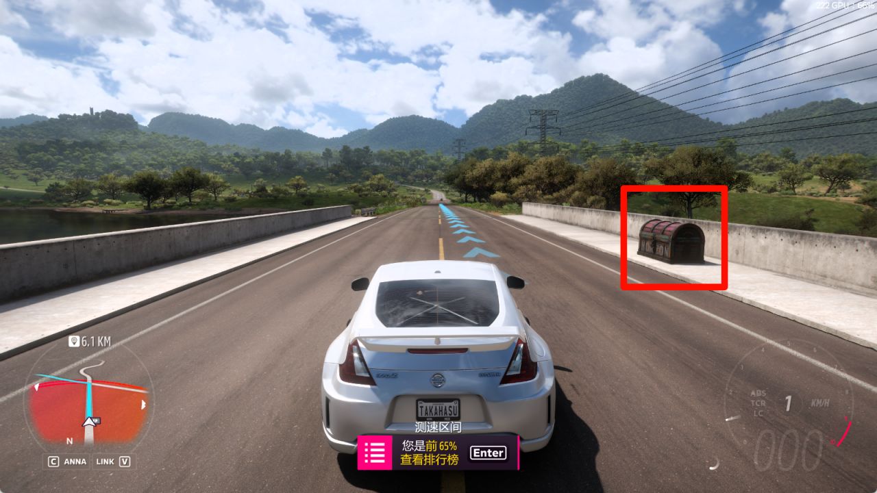 驾驶2010款日产370Z在任意测速区间累积获得?速度,我给370Z找了个S2调校,跑了两次高速路上的四叶草测速区间就完成了。宝箱位置如图,完成奖励为300马拉松点数。