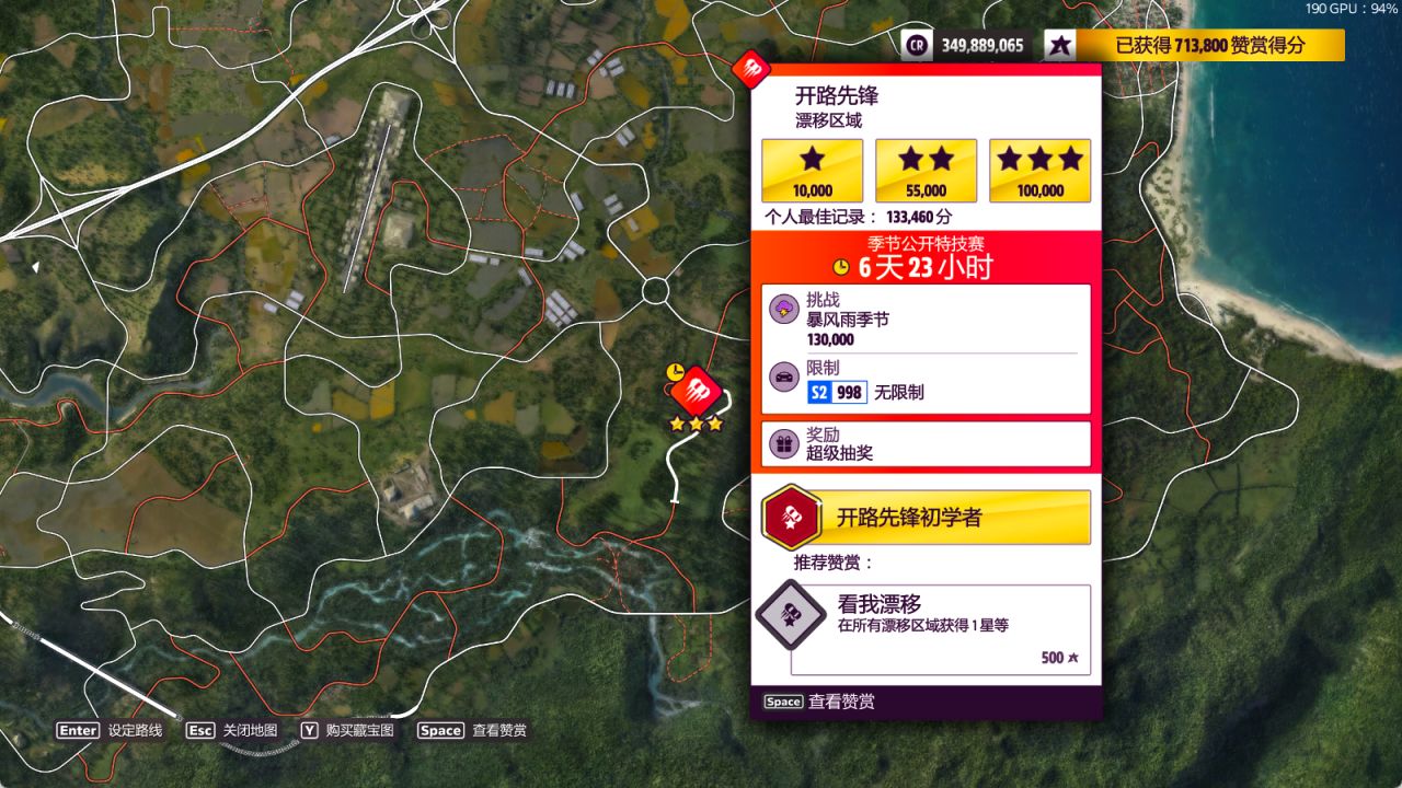 漂移区域:开路先锋,完成奖励为超级抽奖(完成条件:13000分)