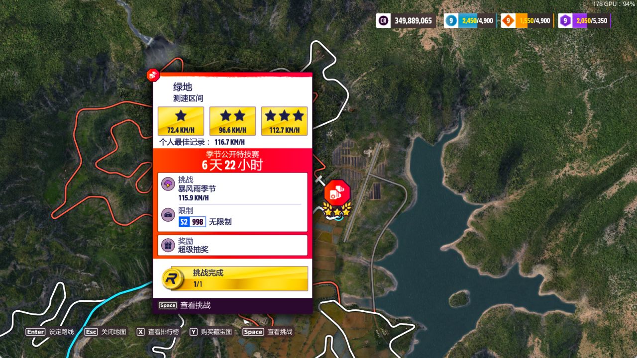 奖励为:超级抽奖(完成条件:115.9km/h)