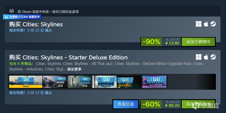 大家好啊,刚刚发现《城市:天际线》竟然一折史低了!原价138元,折后仅需13.8元。上次一折史低还是去年3月的时候,想玩的盒友可以欲入从速了!折扣截止至3月13日。