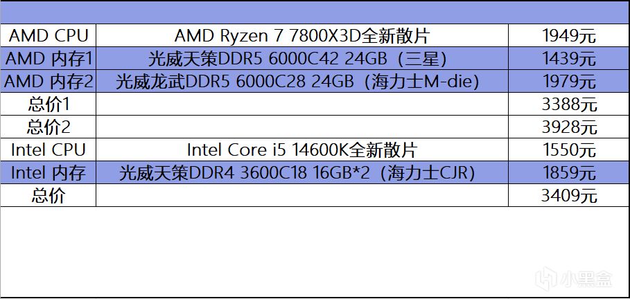 通過以上測試不難發現,銳龍7 7800X3D+單根DDR5 24GB對比14600K+雙通道DDR4 32GB,不僅7800X3D遊戲性能秒殺,領先幅度達到36%,而且算下來整體價格只略高一丟丟,如果用的是6000C42這種普通顆粒的條子,總價幾乎就是完全一致的。