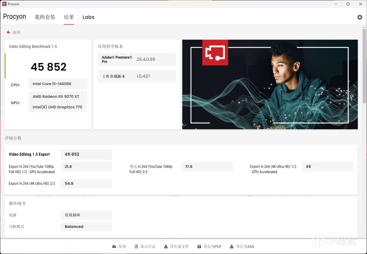 ↑14600K+DDR4 3600C18 16GB*2,Procyon Video Editing基準測試分數爲45852