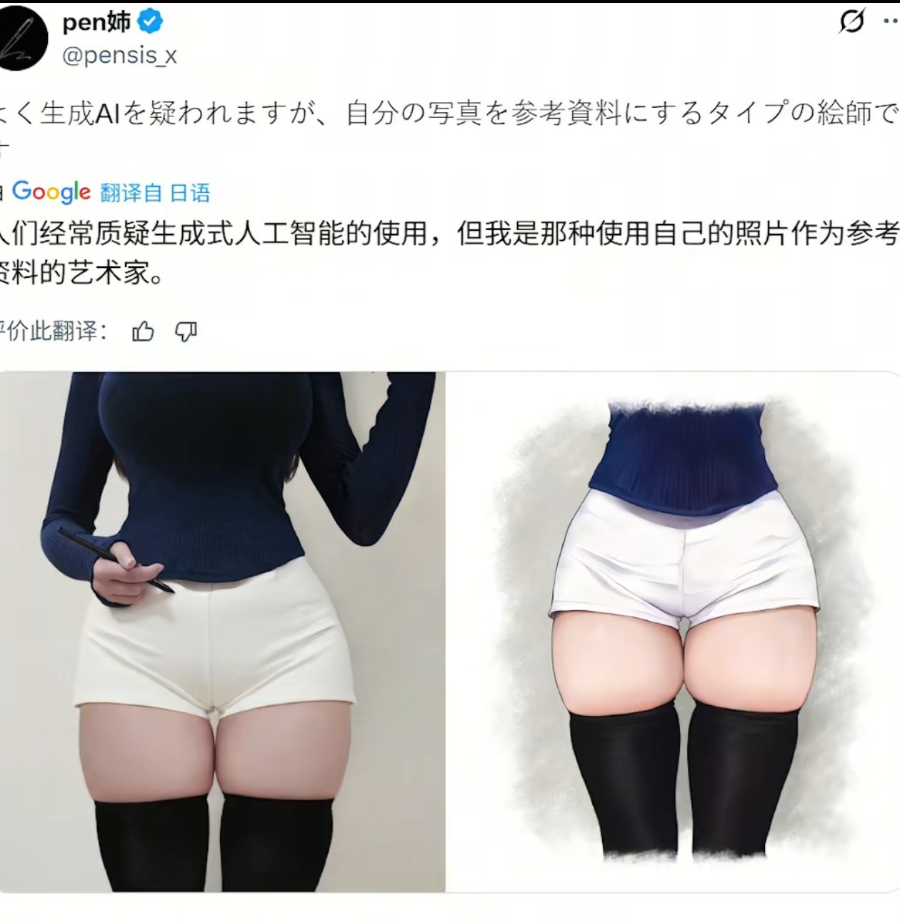 现在又有位太太陷入困局 知名画师pen姉 也是被人说图中的身材过于完美一看就是ai画的