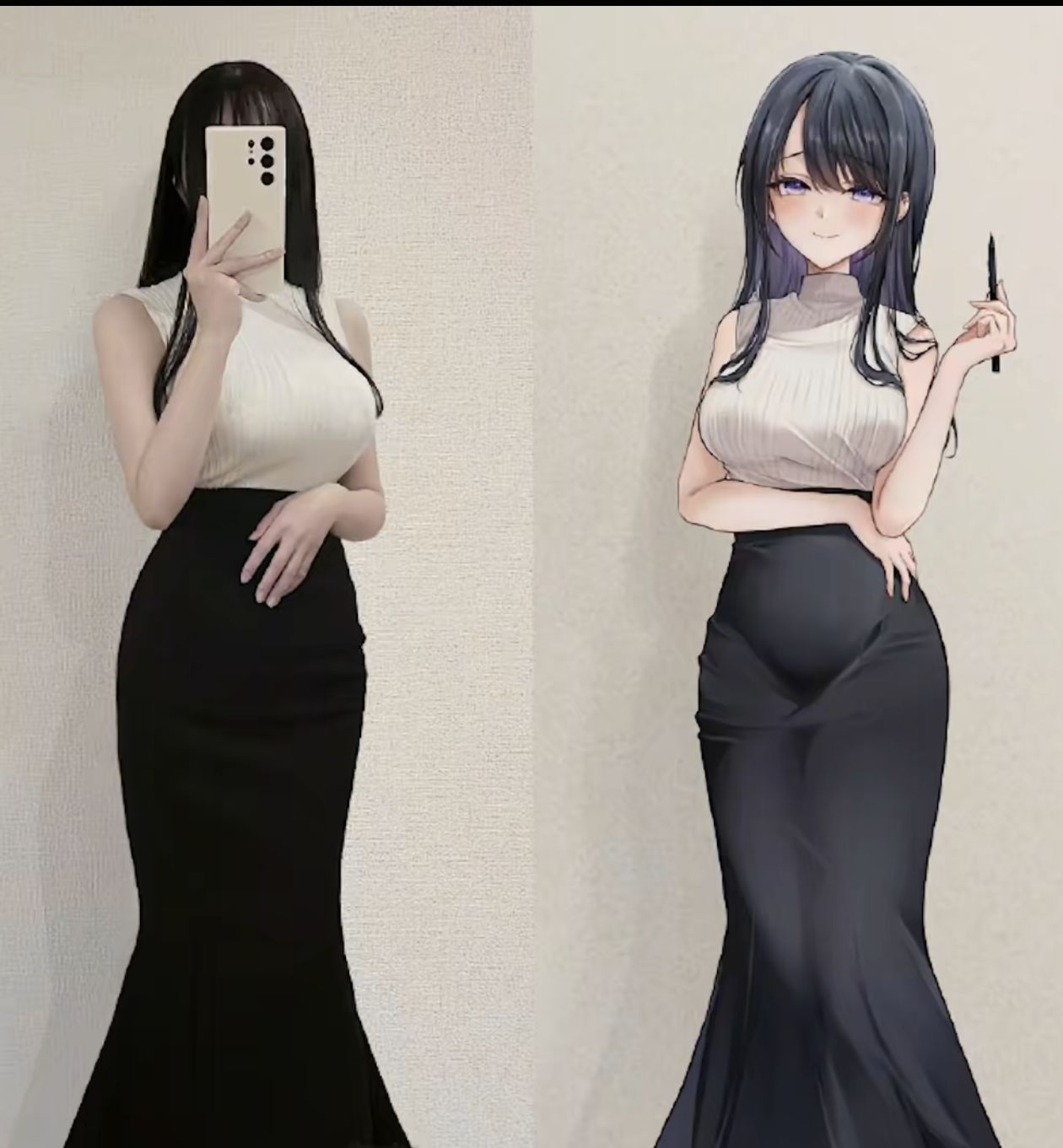 不服气的小姐姐直接拿出对比图说我就是按照自己的身材画的