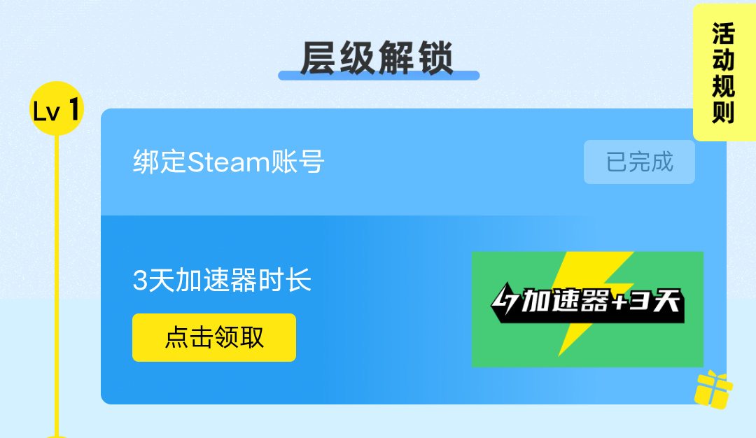 绑定的是steam账号,即可获得「三天小黑盒加速器」