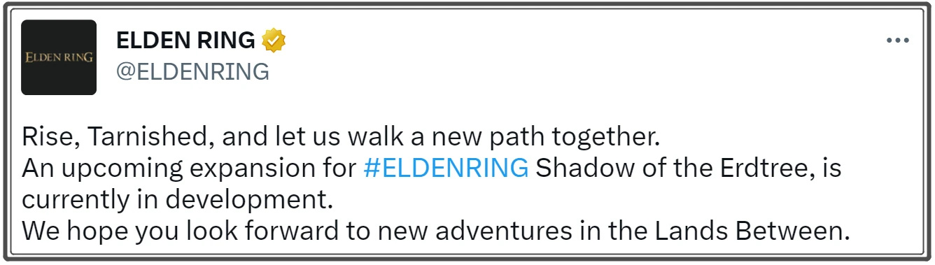 【艾尔登法环】官推首次公布DLC命名:Shadow of the Erdtree【黄金树之影】。