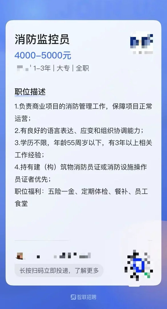 消防控制室 24 小时值班、消防设施检测 / 维保 / 施工,商场、酒店、写字楼、工厂、物业强制按比例配备持证人员,无证不能值班