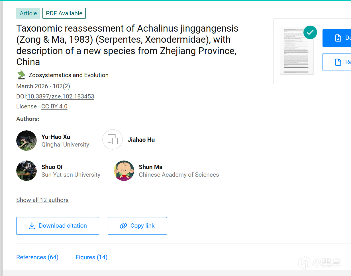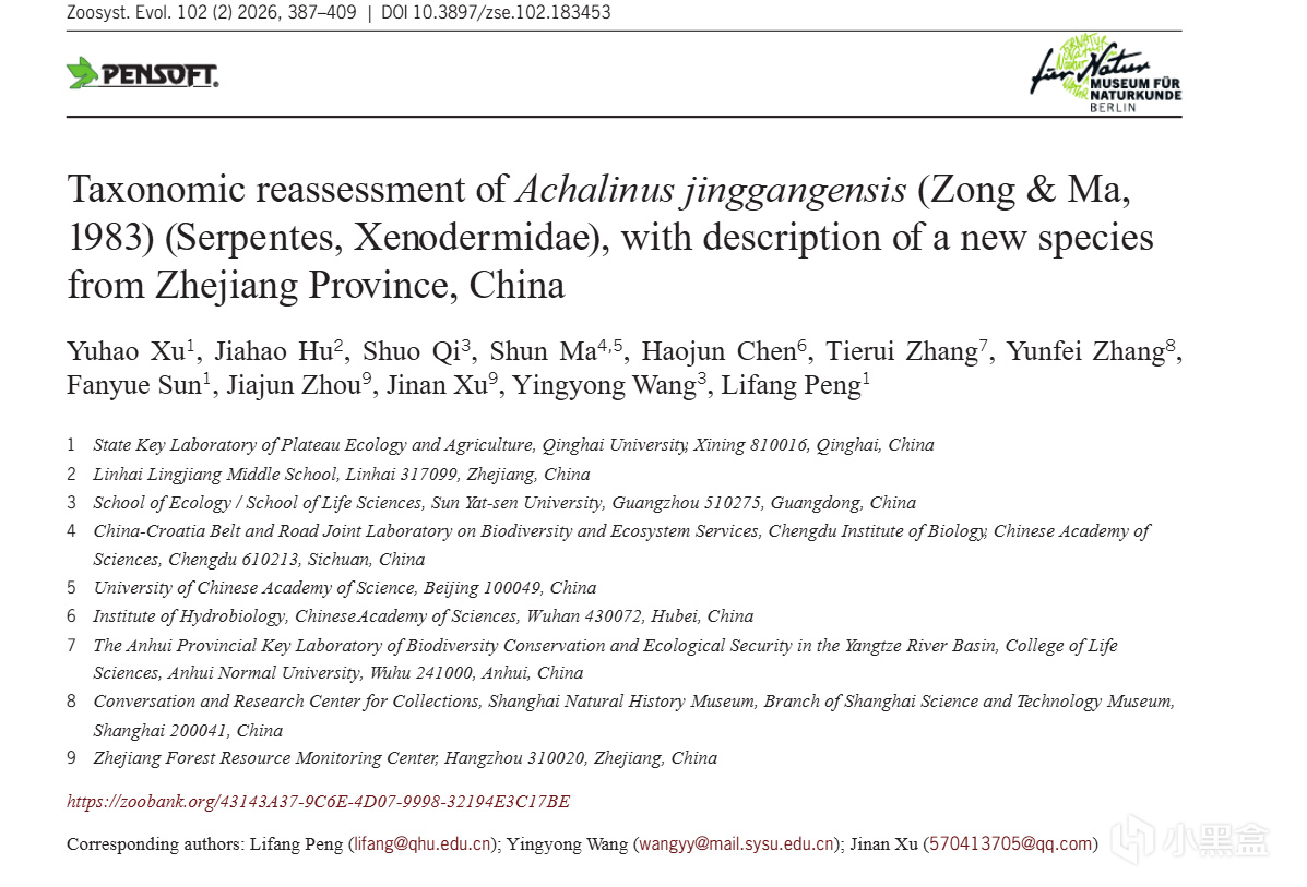 近日,隨着國際學術期刊《Zoosystematics and Evolution》正式刊發研究成果,由浙江臨海靈江中學高三學生胡家豪參與發現並研究的爬行動物新物種——括蒼山脊蛇(學名:Achalinus mirabilis)正式向全球公佈。