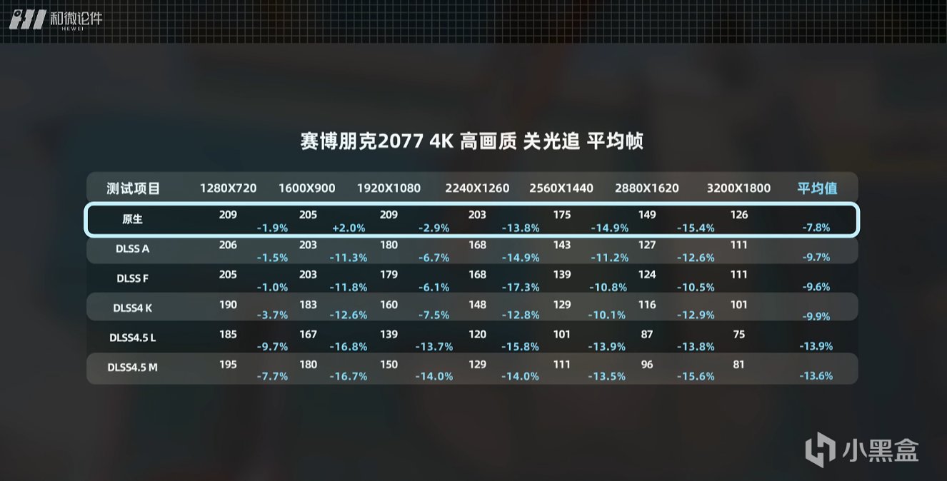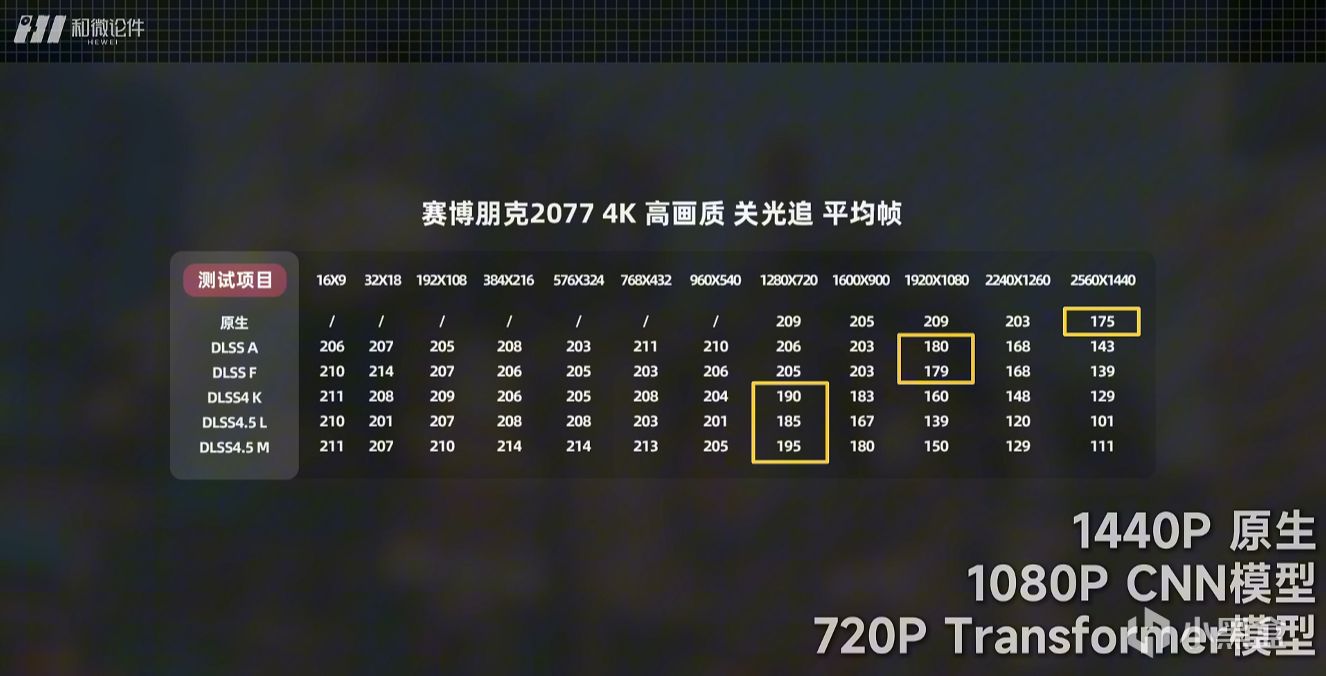 幾組模型在不同渲染分辨率下,與原生4K畫質相近時,幀數表現相差不大,考慮到DLSS4.5的L、M模型抗鋸齒效果更加平滑,運動圖像清晰度更高,閃爍殘影現象也大幅減少,更推薦大家選用。