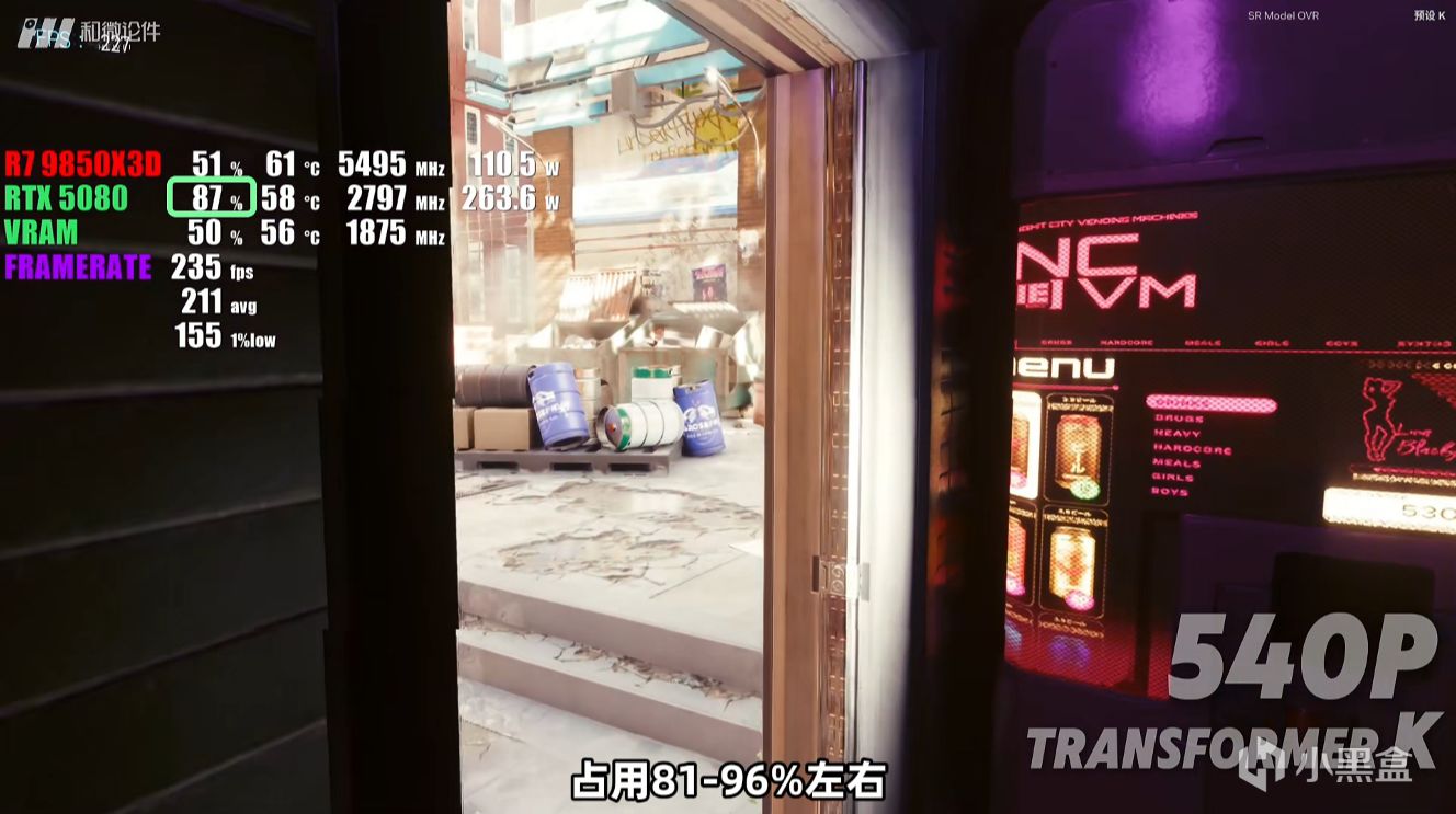 K模型在540P下渲染時幾乎與1080P畫質相同佔用81-96%左右
