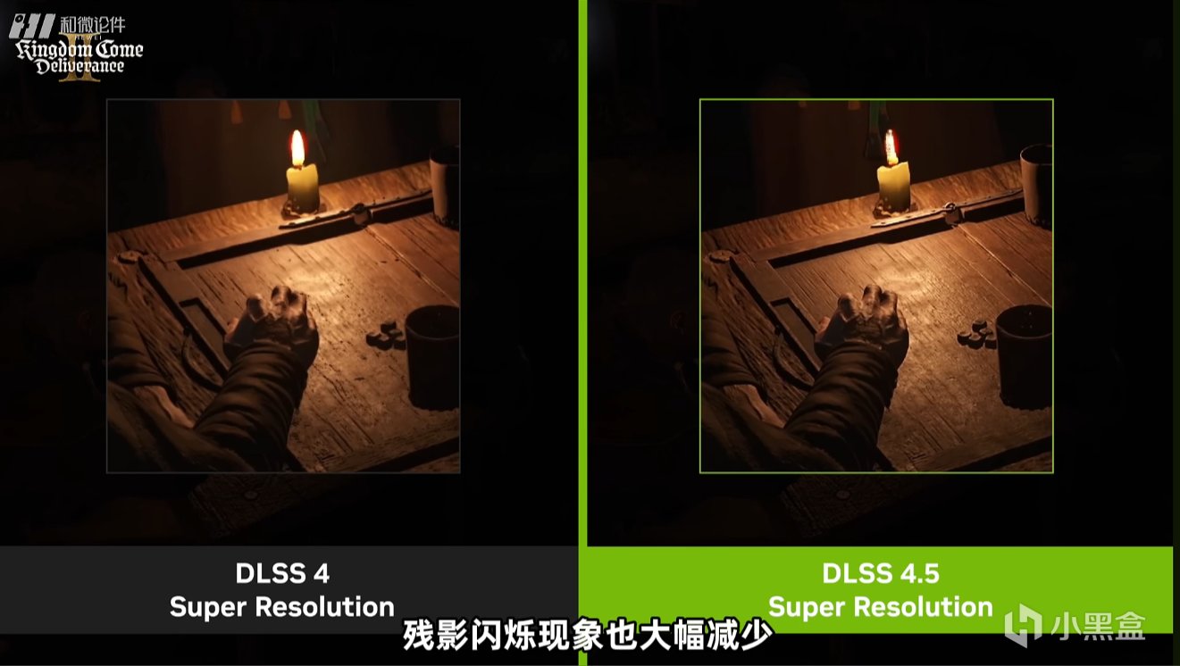 而DLSS4推出的Transformer模型改進了這一點,更能精準感知場景上下文,內置可解釋性,說白了就是不僅知道是什麼,更明白爲什麼,這種基於深度推理生成的畫面效果提升顯著,DLSS4.5的二代Transformer模型在初代基礎上提升了5倍算力,光線效果更加符合物理規律,殘影閃爍現象也大幅減少。