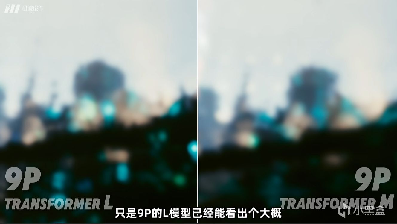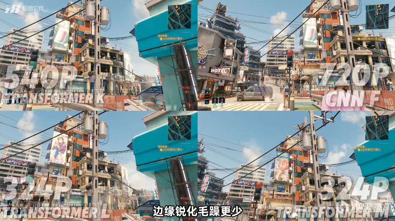 但跟324P的K模型比還是有差距的;L整體畫面觀感比M還要更通透清晰點,324P的L、M模型就和1080P原生幾乎看不出區別了,同時比720P的A、F模型,540P的K模型畫質更好、更細膩,邊緣銳化毛躁更少,明暗區分更加明顯,整體畫面效果更爲逼真。由此可見,第二代Transformer的L、M模型能夠以更低的像素需求,渲染出更逼真、更出色的畫面效果。