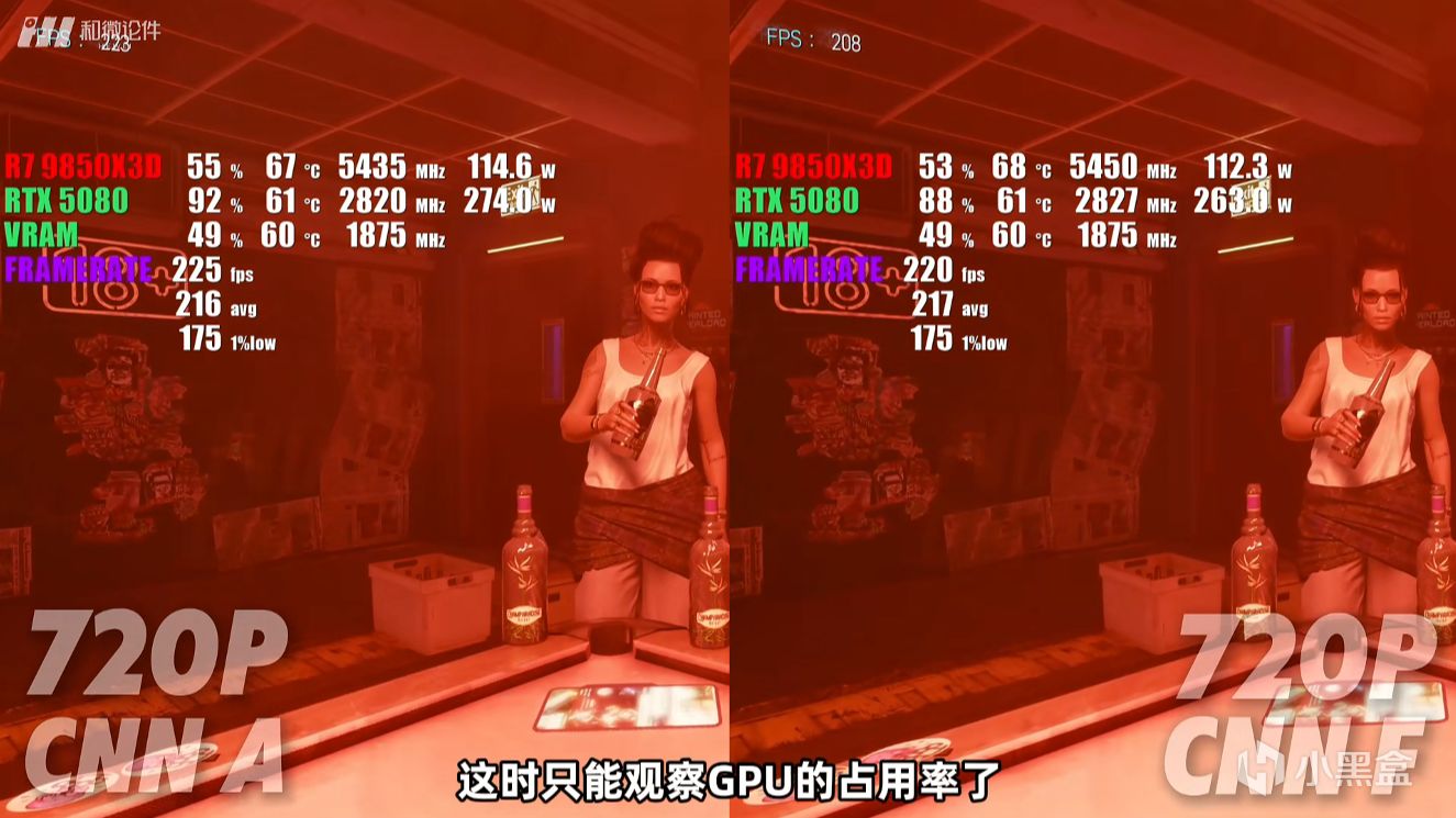 CNN模型中的A、F模型需要在1080P開始渲染,畫質才能與原生4K相近,此時平均幀高約91.5%,