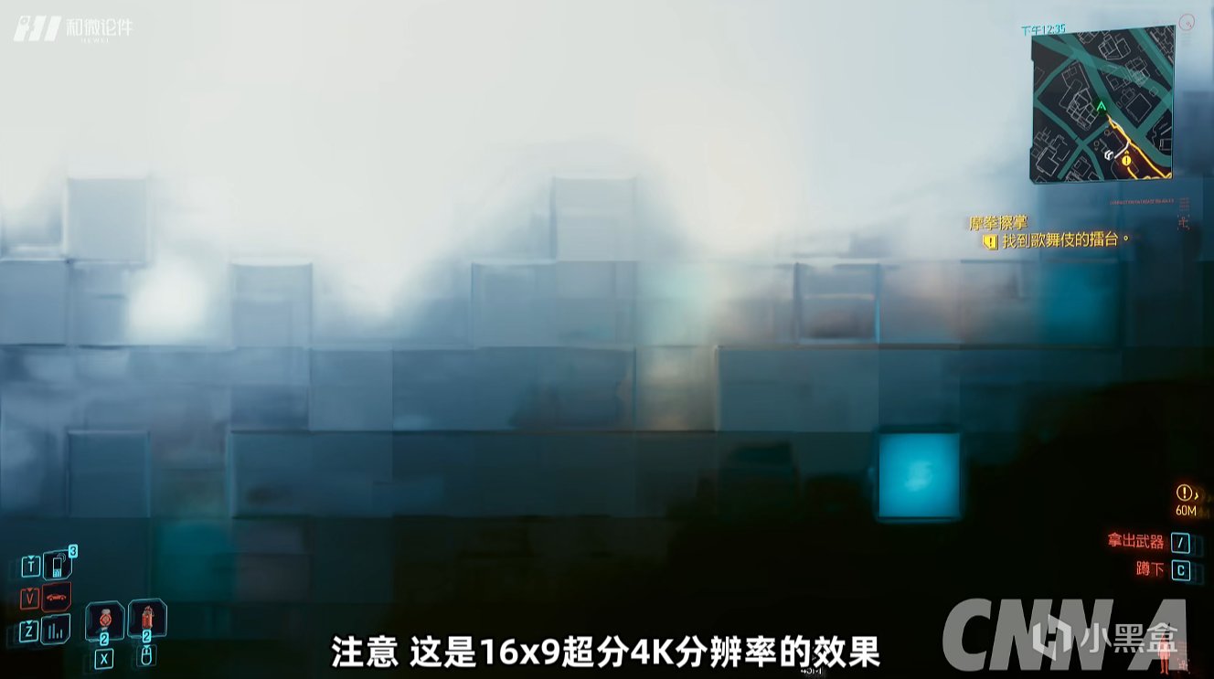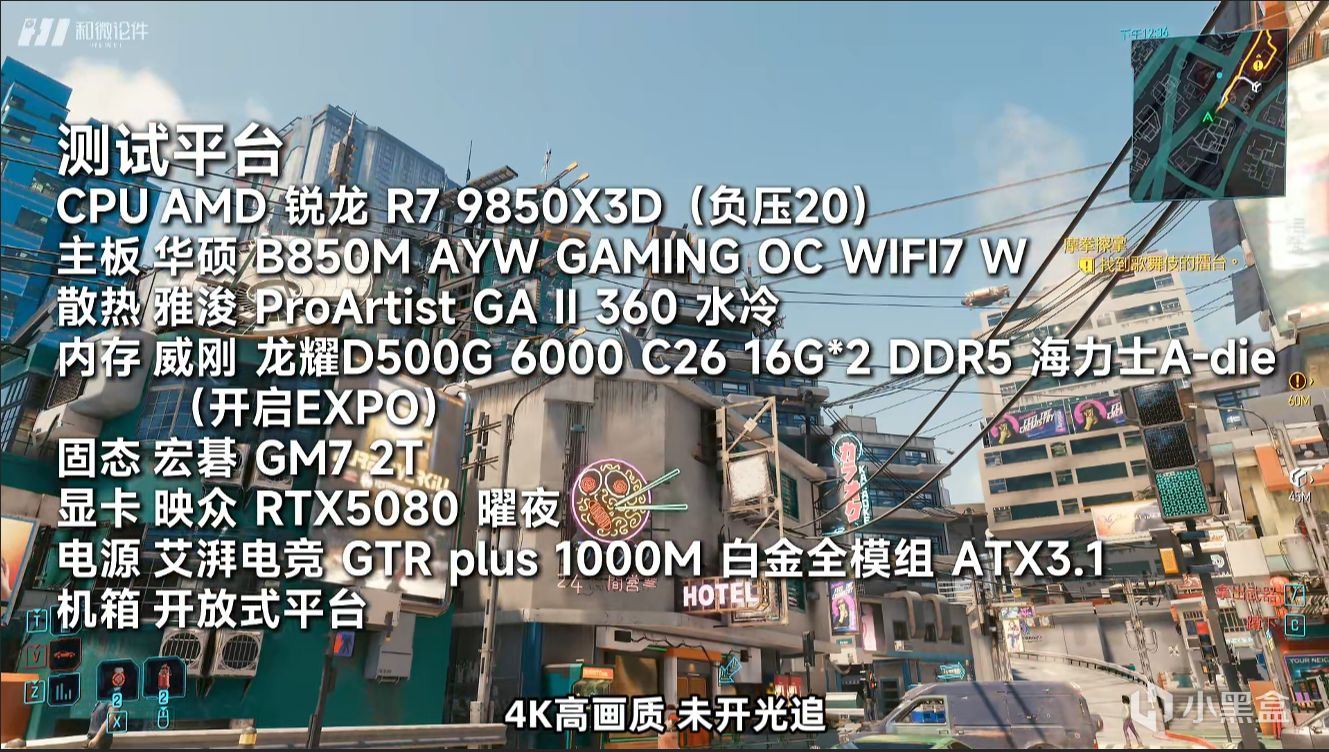 遊戲爲賽博朋克2077,4K高畫質,未開光追,因爲開啓後畫面顯示有問題,只有黑白斑點。