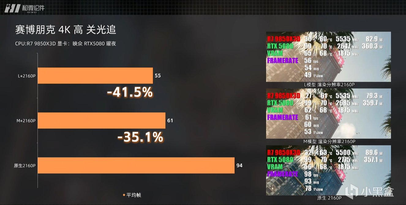 4K畫質,100%直接拉滿開渲,L、M模型畫面相比比原生4K我其實沒怎麼看出區別,此時平均幀分別低約41.5%、35.1%,相較原生4K幀數銳減,在3A幀數流暢線徘徊,就不如直接用原生畫質了;