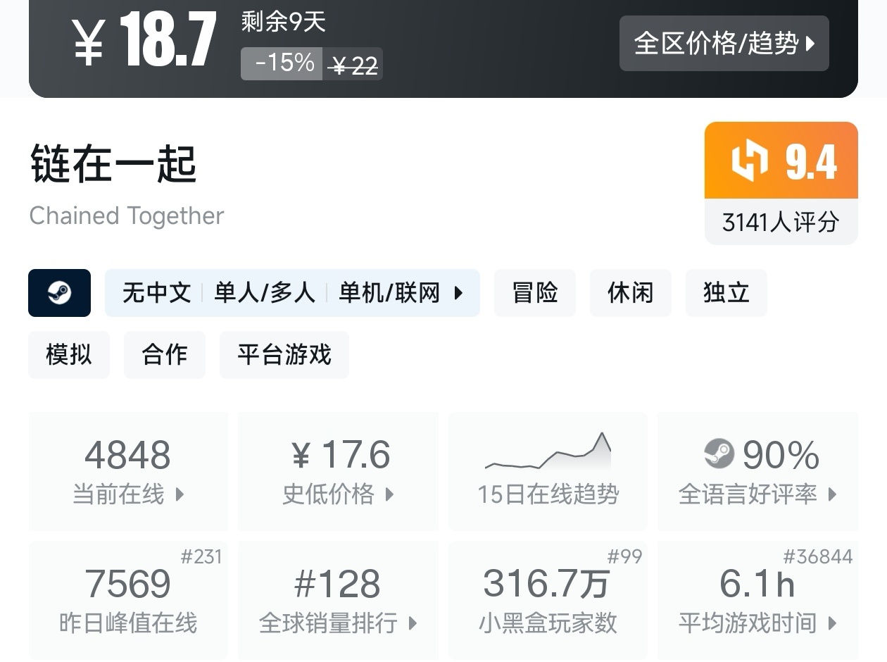 大家好,没错,又是我,你们的老朋友亦然,在最近,Steam又有很多游戏都迎来了折扣,其中就有很多游戏拥有很高的评价,同时拥有非常高的性价比,其中甚至有很多款属于是神作级别,有挺多都不经常史低,我将为各位进行一个汇总,希望我的汇总,能够帮助各位盒友挑选心仪的游戏。