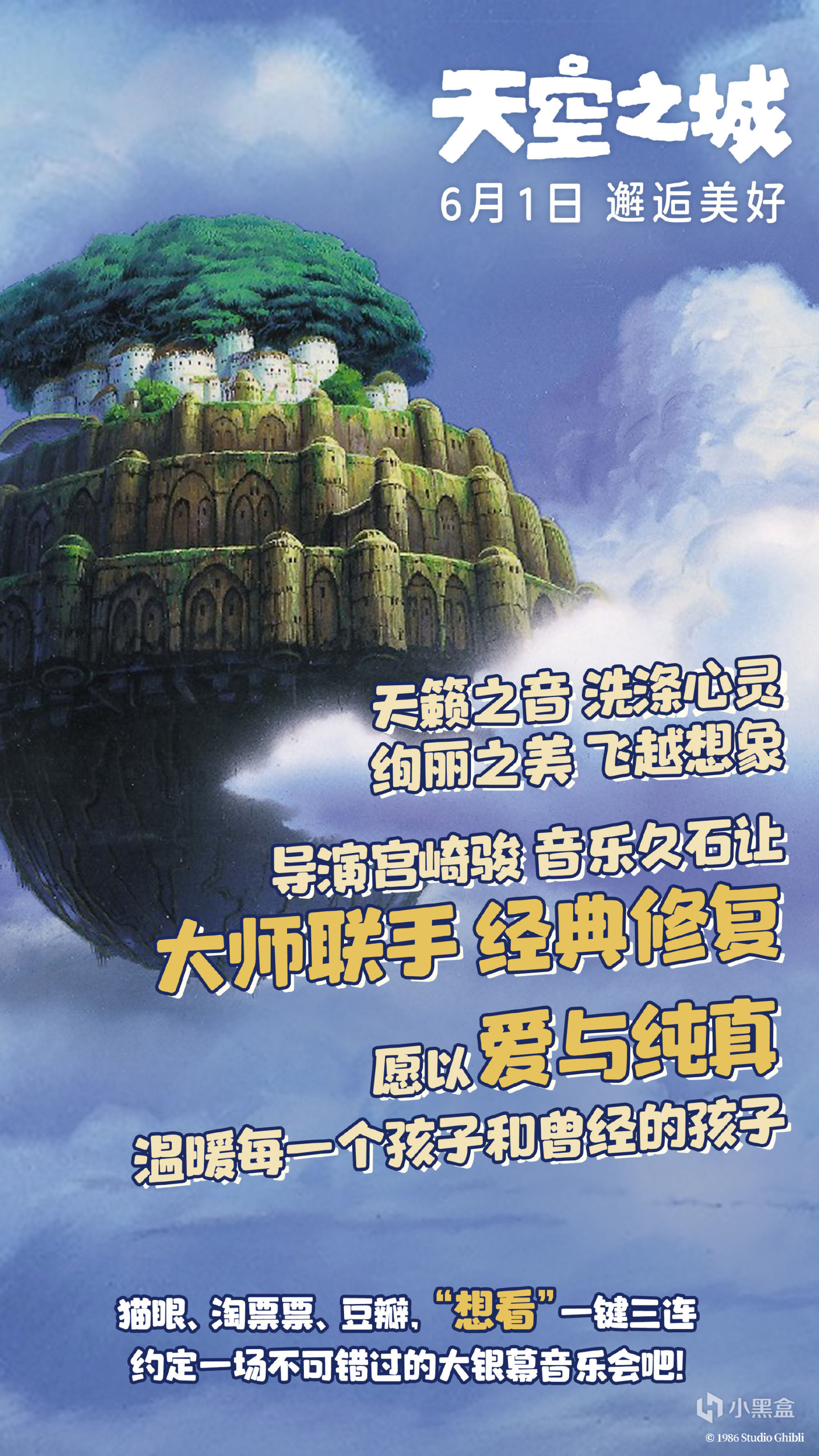 今日(3月1日),电影天空之城官方微博宣布:宫崎骏经典动画电影《天空之城》确认定档,6月1日全国上映!