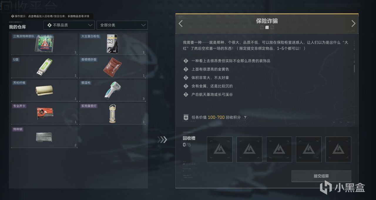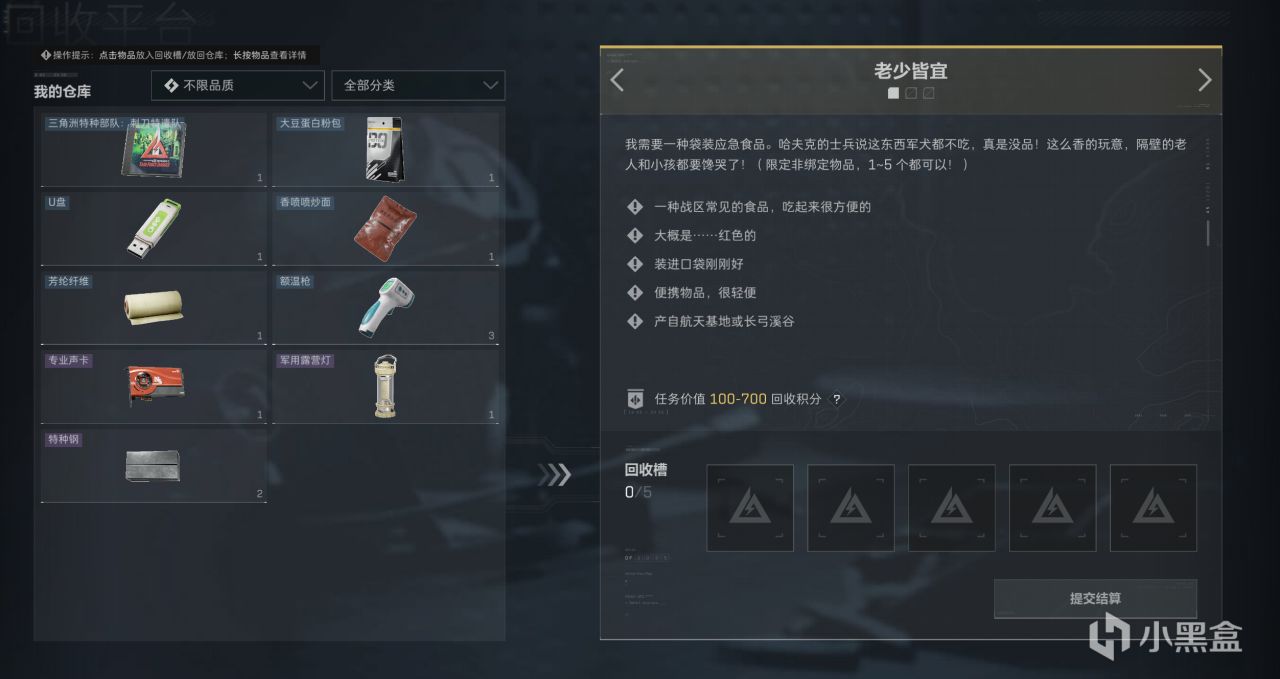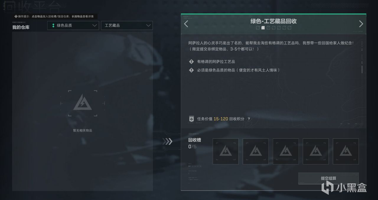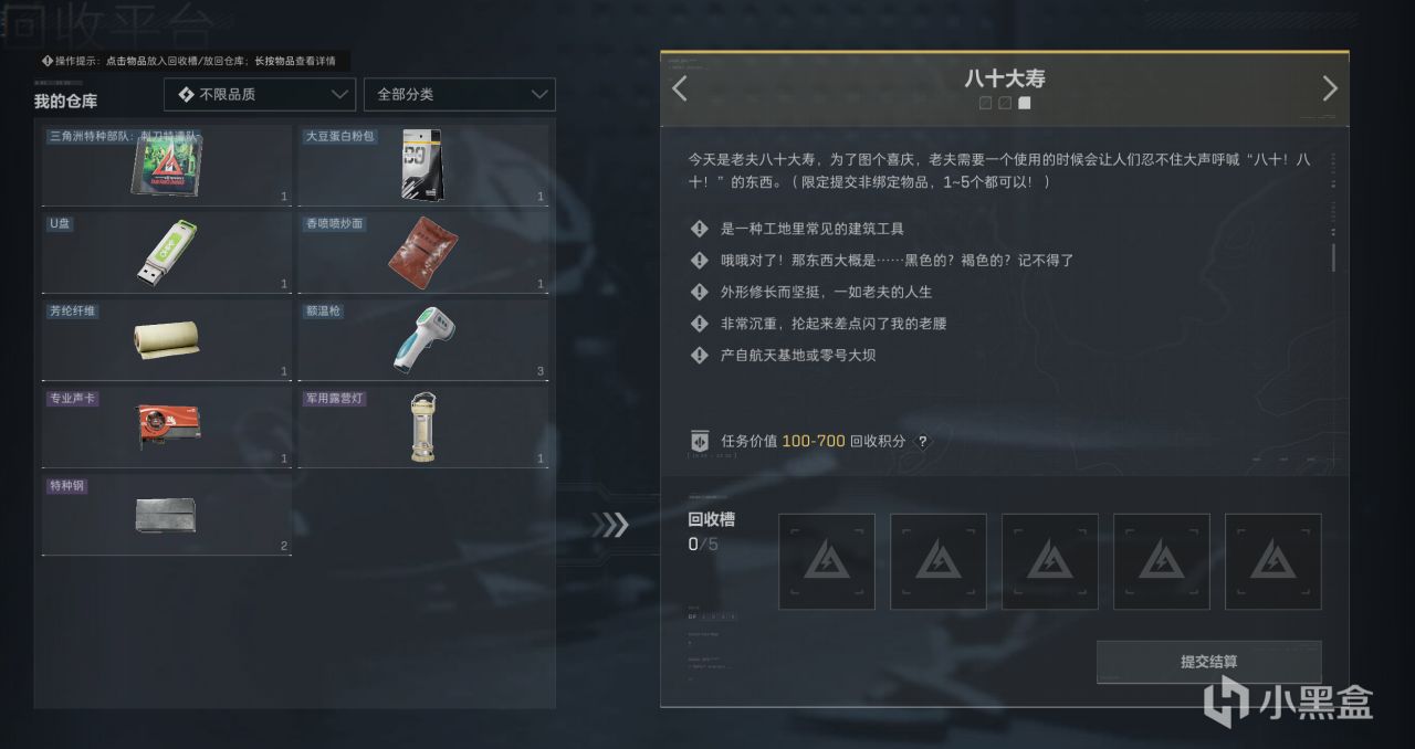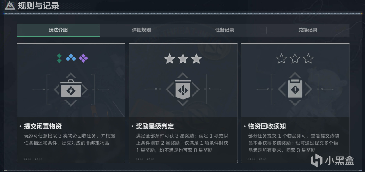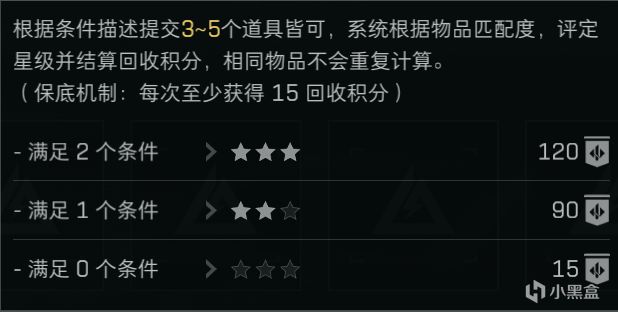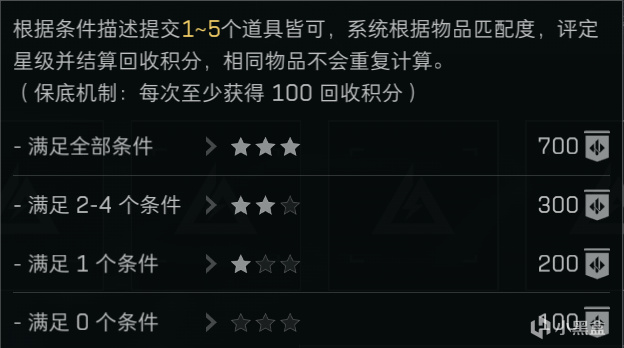 ②提交物品與任務要求匹配度越高,星級評價越高,回收積分越多。