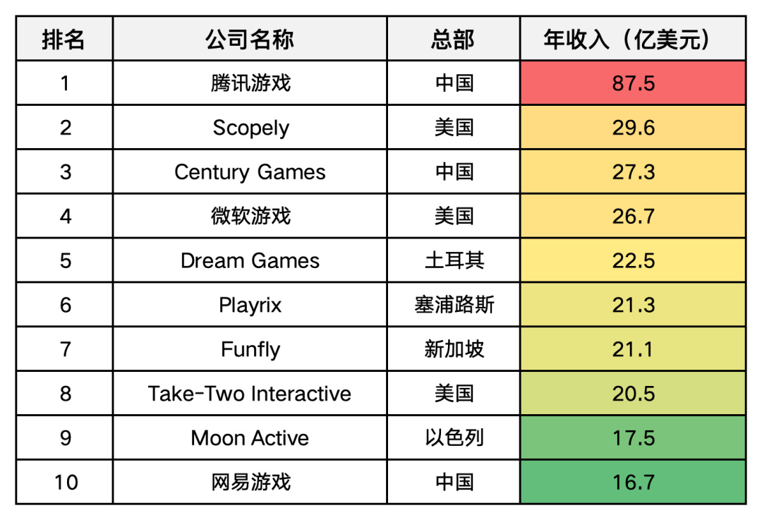 2025全球游戏公司收入TOP10,数据来源AppMagic