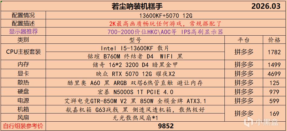 写在最前面,以下几个注意事项每个月都跟你们说一下,我发现每个月写的配置推荐总是有人质疑价格、平台、售后之类的,往后每一期配置推荐我都会给列出来,如有其他疑问及时评论,我会为你解答: