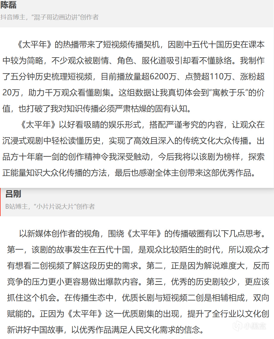 值得关注的是,《太平年》在社交平台引发了现象级的“历史学习热潮”。抖音博主“混子哥”与B站博主“小片片”作为新媒体代表发言,分享了短视频二创如何助力千万观众读懂复杂历史。