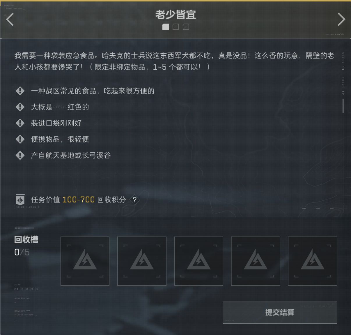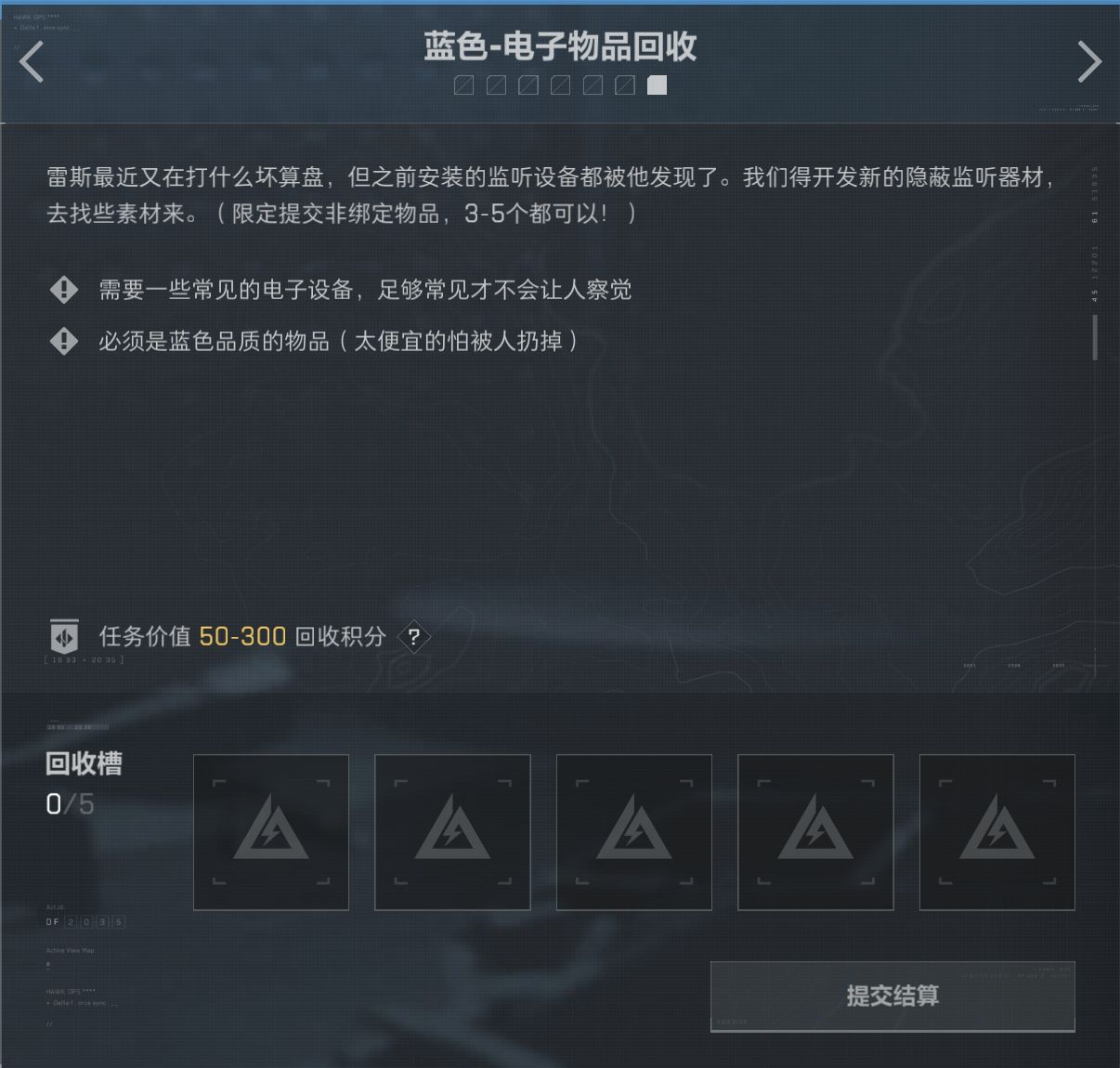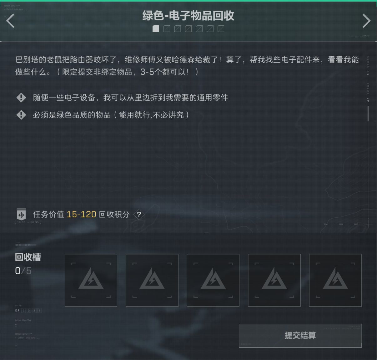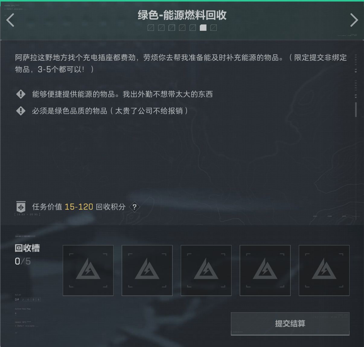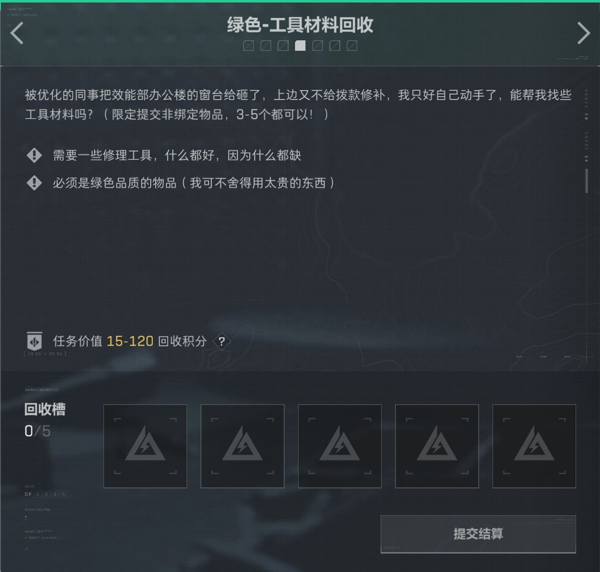 任務分爲綠色/藍色/特殊任務,藍色綠色任務一共7個,可以提交5個。特殊任務可以提交3個.