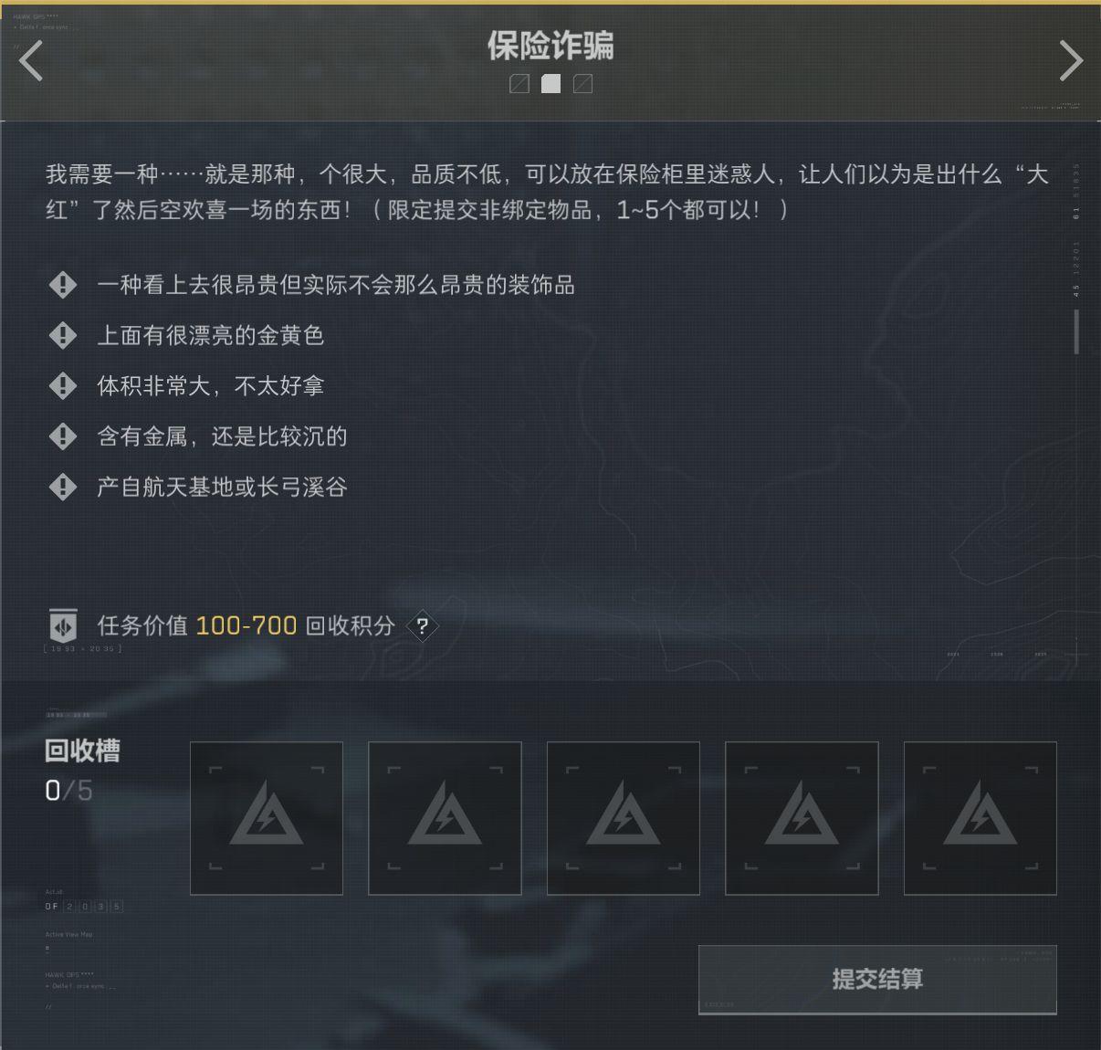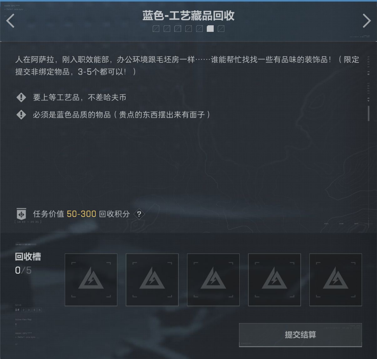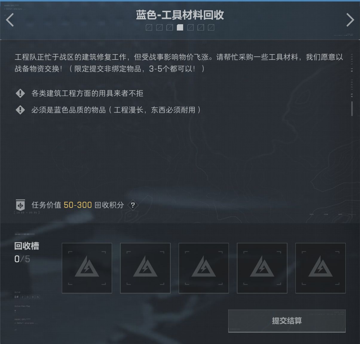 藍綠色最少提交三個,特殊任務最少一個,最多都是5個(非綁定物品)