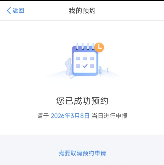点击预约即可,这里如果预约了没有及时申报也没关系,我们依然可以在3月21日之后随时申报,大家不用担心哈