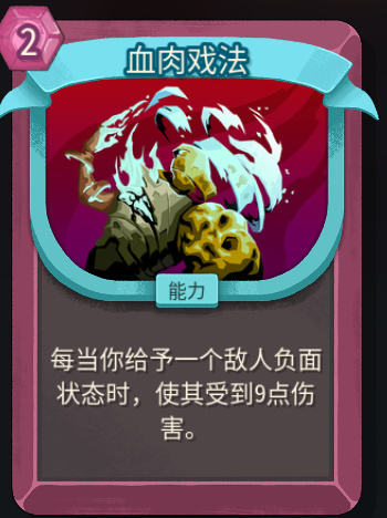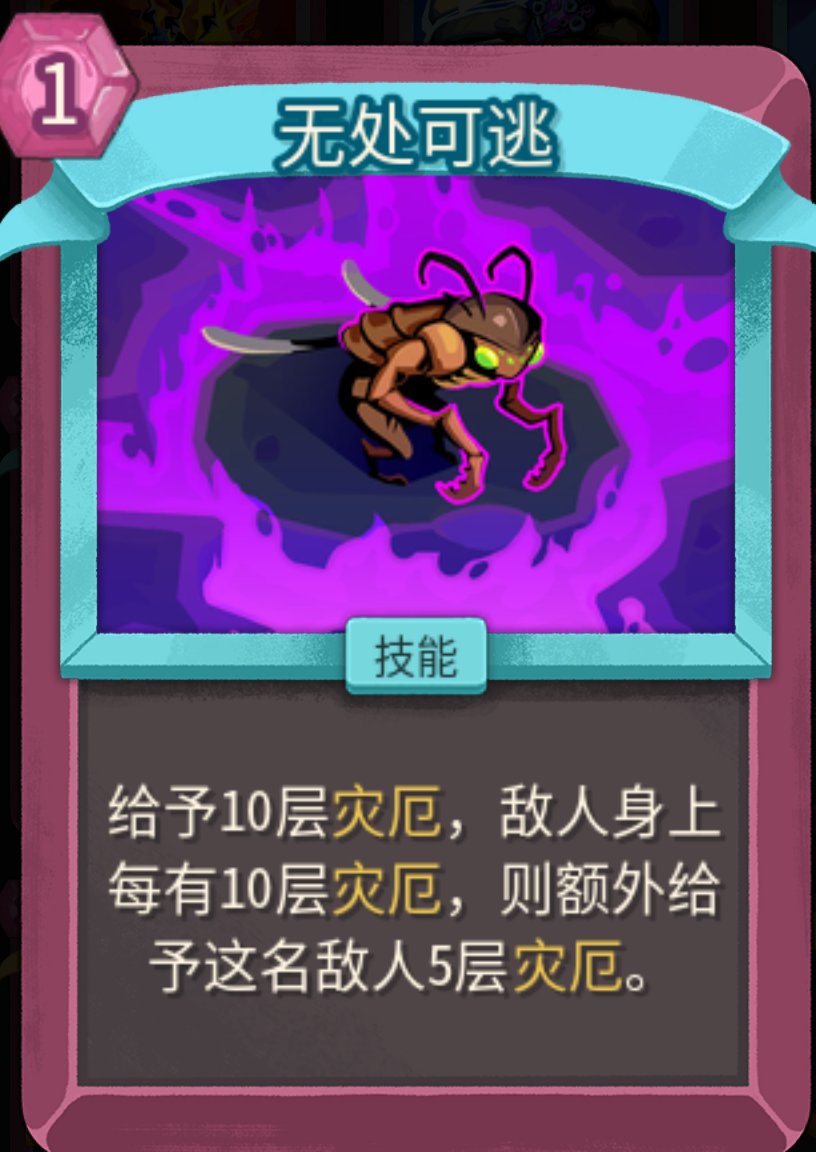 灾厄:当敌人的灾厄层数大于敌人当前生命值时,敌人会在回合结束时死亡。