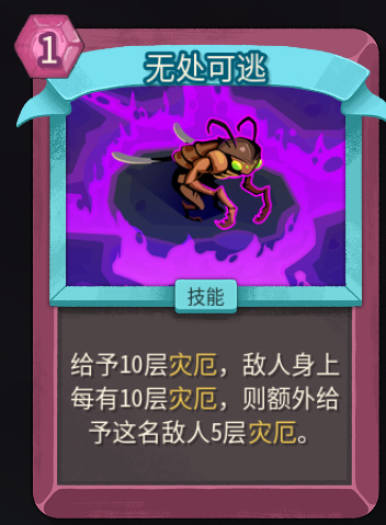 无处可逃为灾厄的指数增长部分,基本上想要靠灾厄体系通关都是刚需这张卡的。