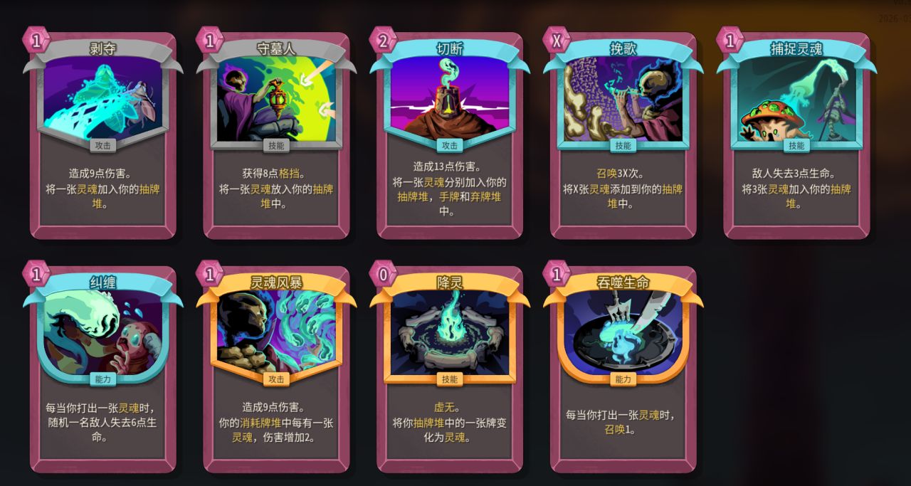 所以,你可以选取一些能够提供能量或者过卡的卡,和灵魂体系杂糅一下。或者选一些可以在抽牌/弃牌堆里面发现卡牌的卡,去指数增长敌人的灾厄层数。
