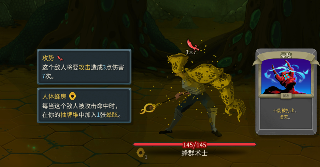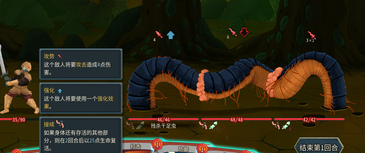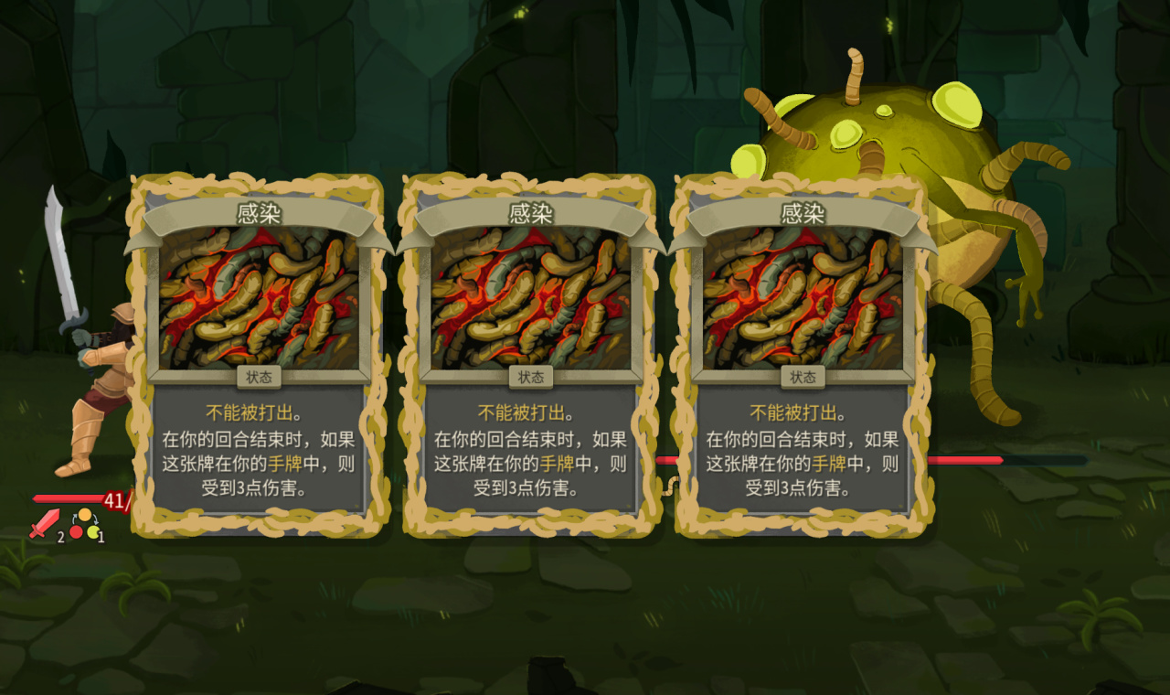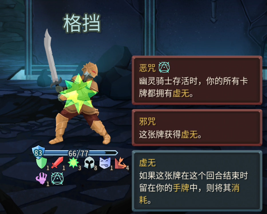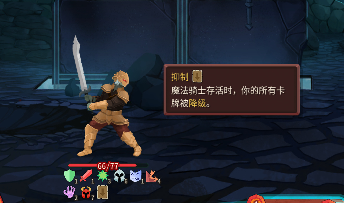 中间的幽灵骑士会给你上恶咒,只要他存活你的牌就全部带虚无,不优先击杀,卡会越打越少,没有补费第一回合如果全上核心卡会很头疼。