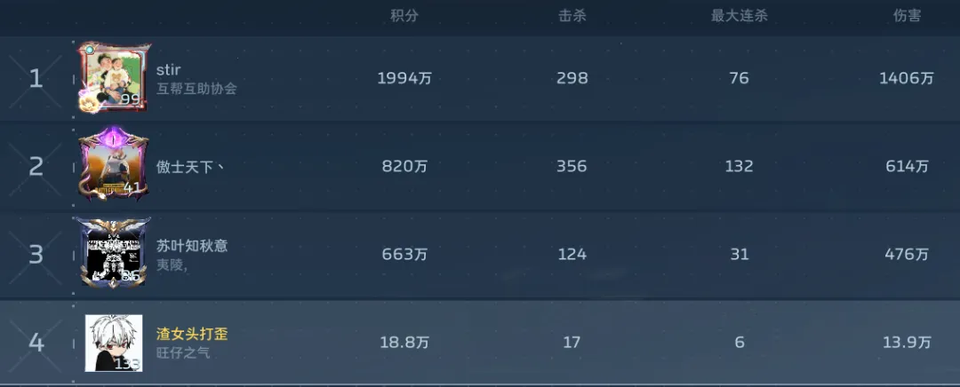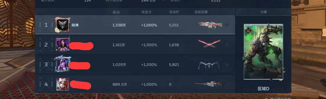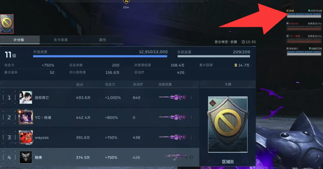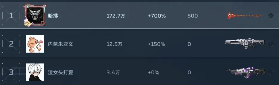 接着我这个积分和攻击力垫底的,打狼王boss伤害排第一,也不知道刷了个啥。