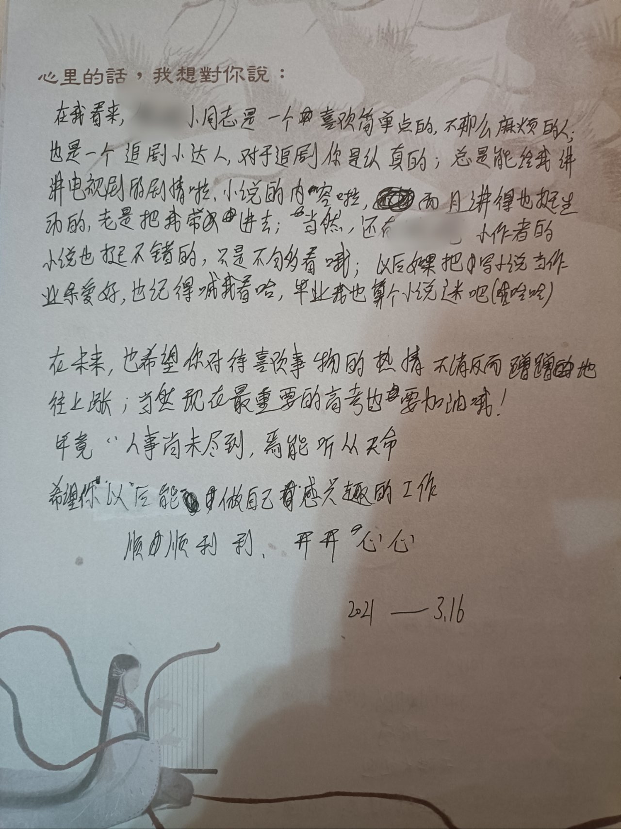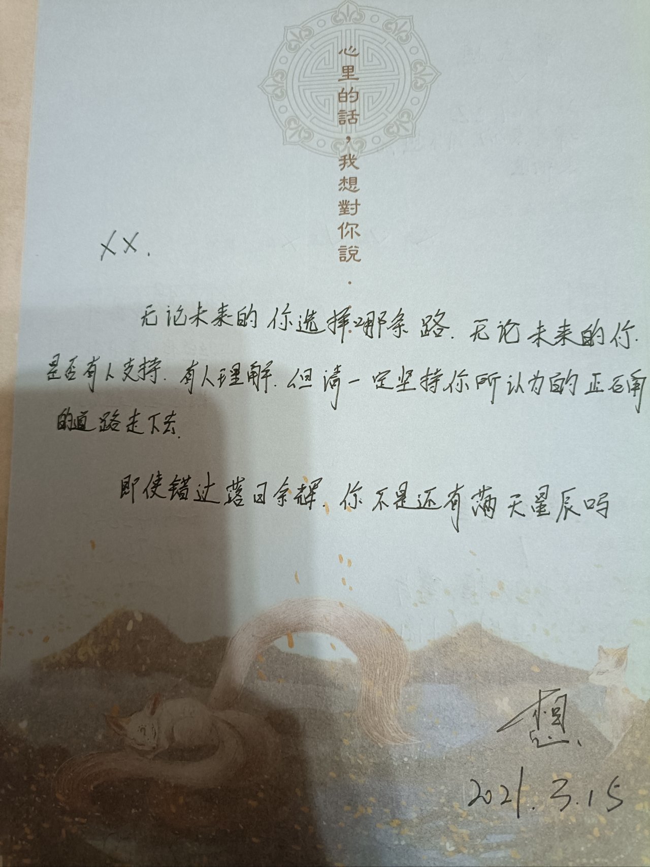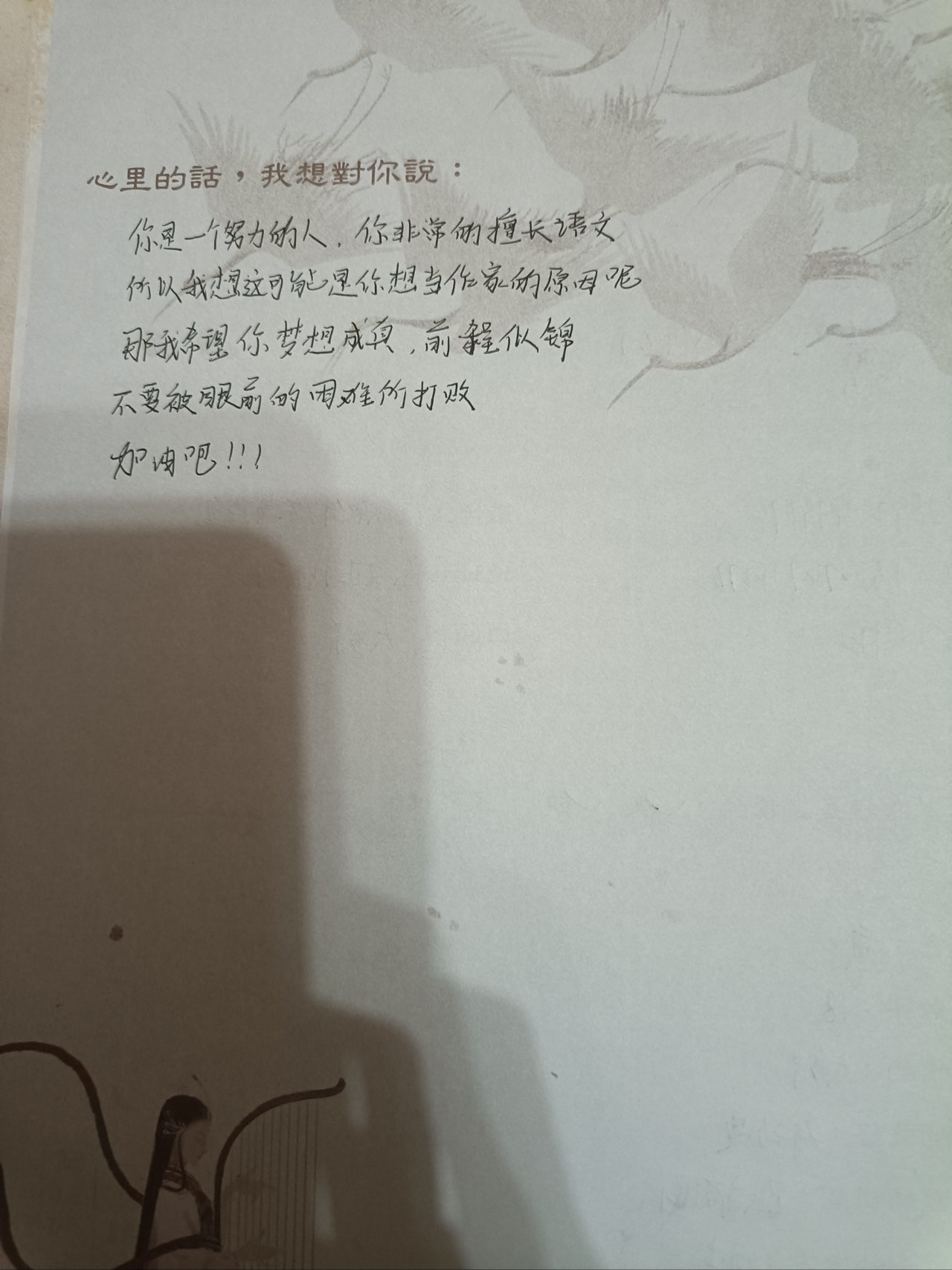 平常喜歡插科打諢的同學給我留下的話,意外地很契合我此時的心境。