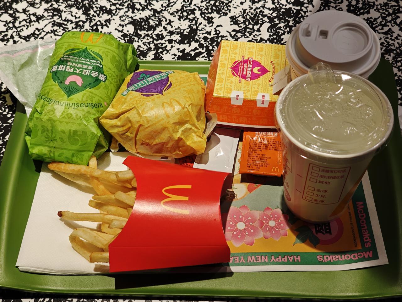 有個雙人套餐就能一次性將新品全覆蓋,那當然是果斷出手,感覺兩個漢堡好小啊,不如以前的實在。