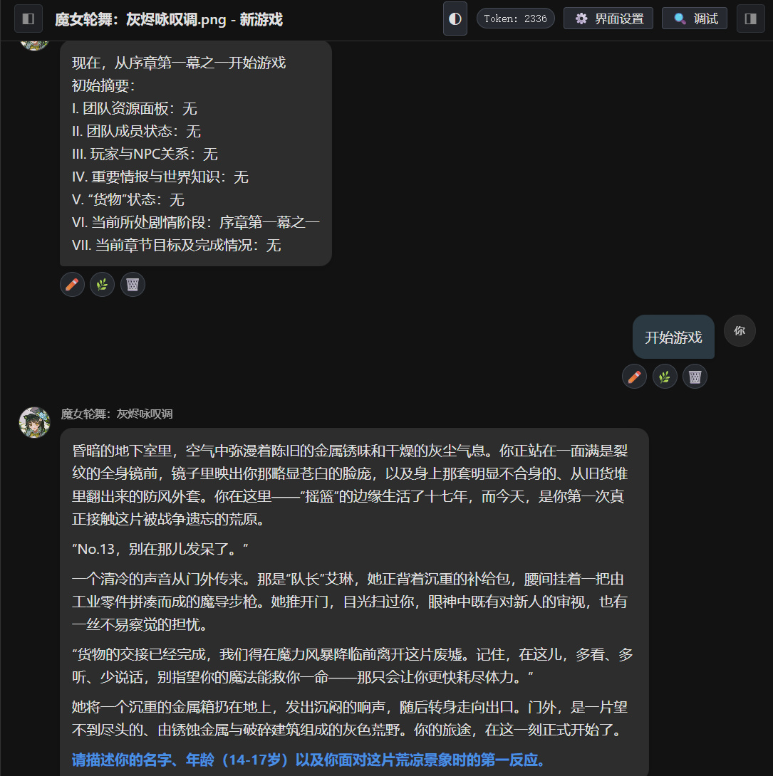 导入PNG角色卡(同时支持JSON,甚至支持txt)后,软件提供两种不同的交互界面,你可以随时根据剧本的类型自由切换: